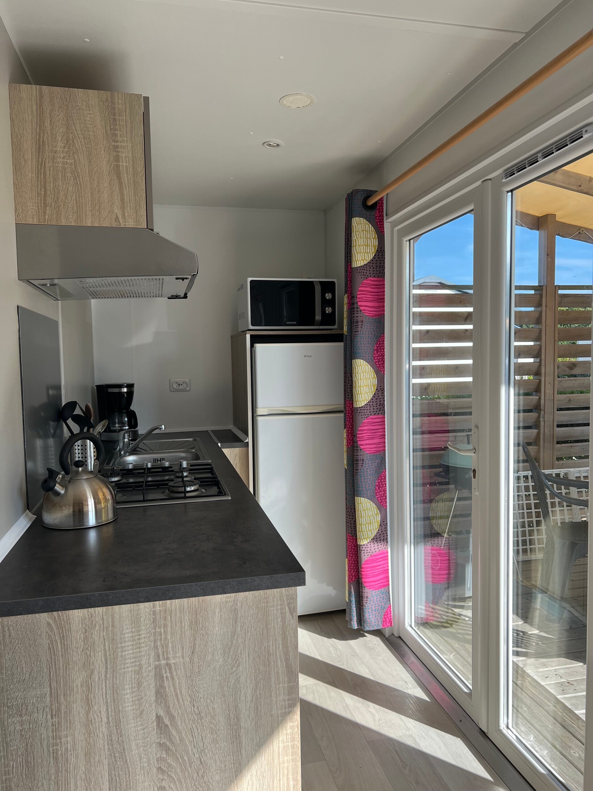 Profitez d’un mobil-home lumineux et pratique grâce à ses deux accès extérieurs.